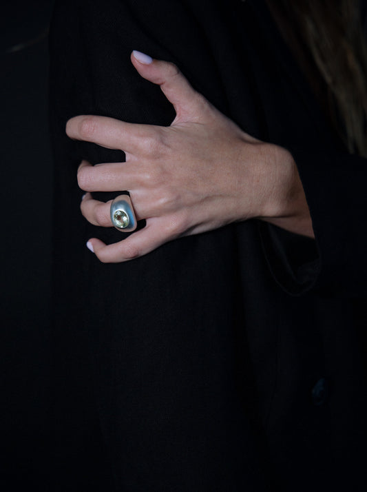 Mit einem Lemon Citrin den wir in Indien gefunden haben - eingefasst in 25 Gramm recyceltem Silber.