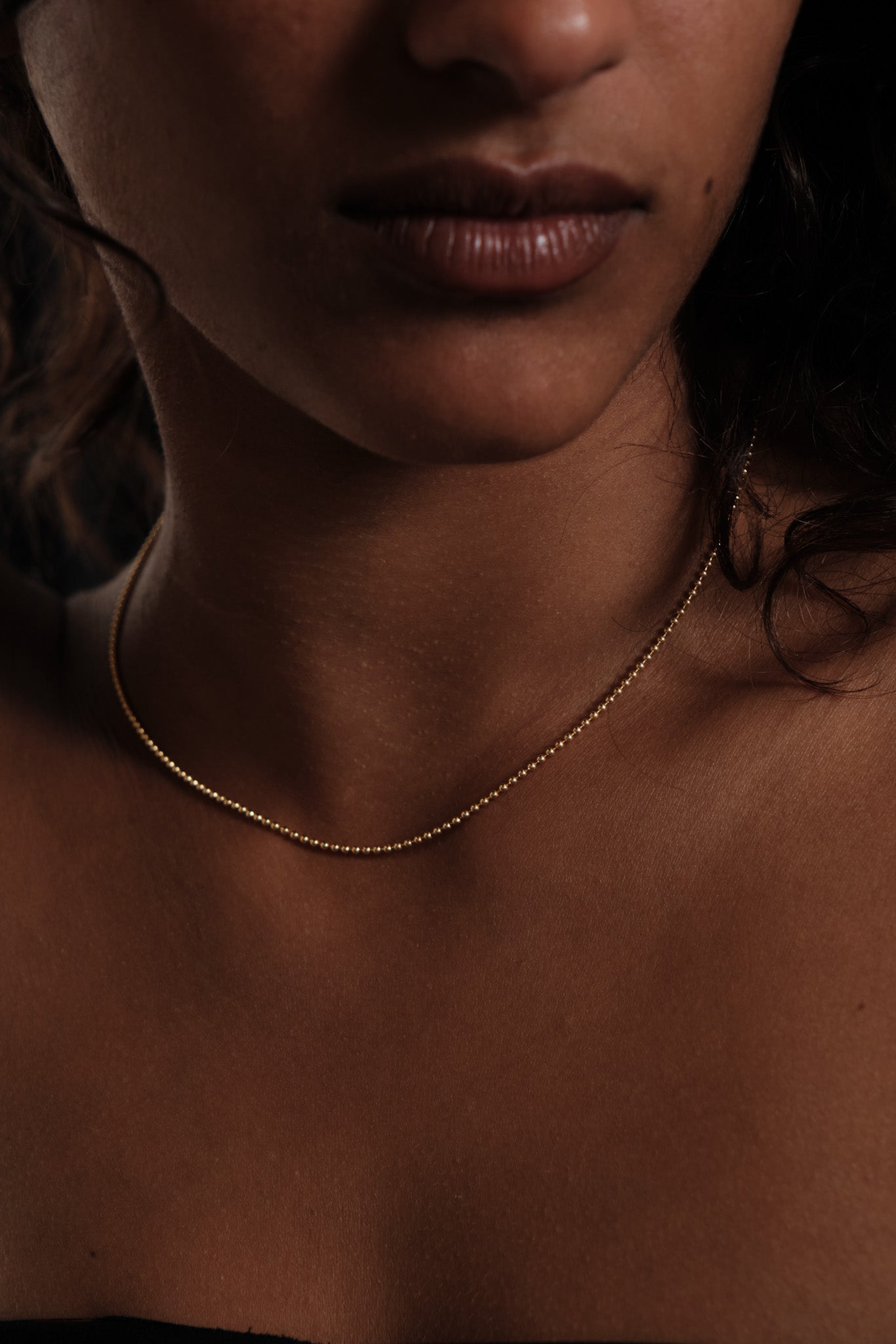 Die feine Kugelkette legt sich wie ein goldener Hauch um den Hals und schenkt deiner Haut einen warmen Glow.